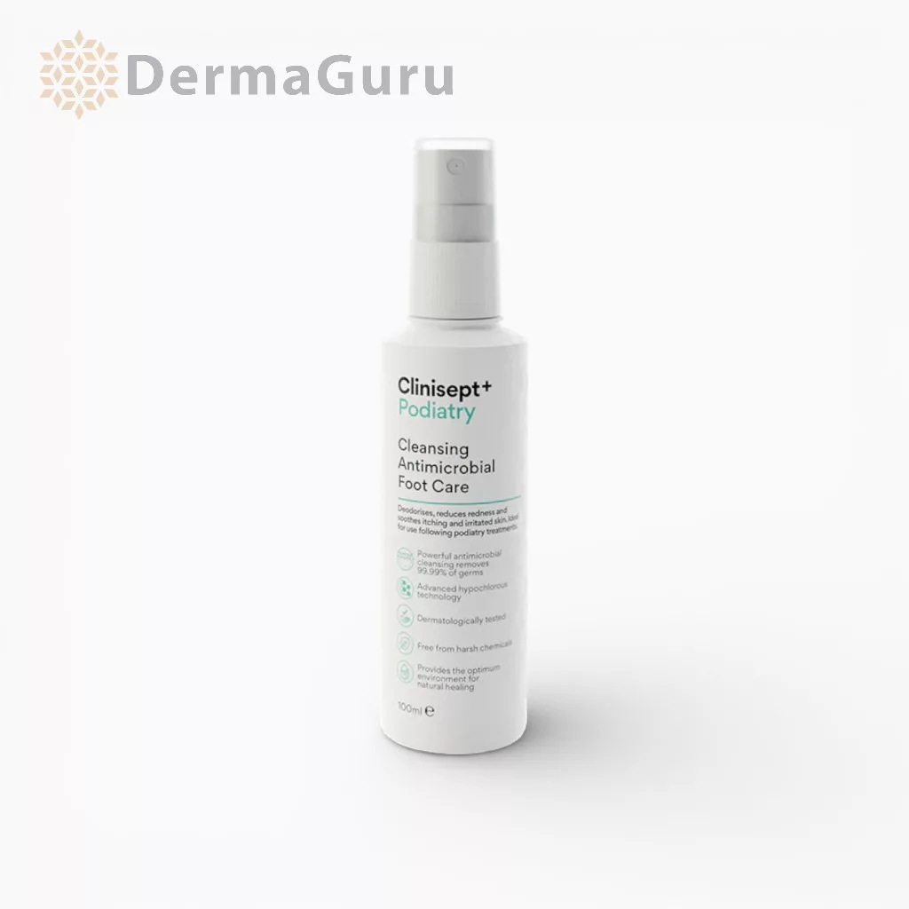Clinisept+ Podiatry 100 ml este o soluție igienică apoasă, gata de utilizare, dezvoltată special pentru tratamente de îngrijire a picioarelor și aplicații podologice. Ambalajul cu pompă spray (trigger) asigură o aplicare rapidă, fără contact, deosebit de utilă în cazul pielii sensibile, când aplicarea cu tifon poate fi neplăcută.