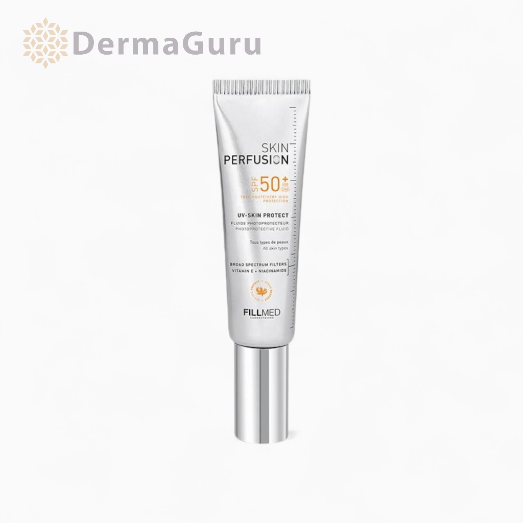 Fillmed Skin Perfusion UV Skin Protect SPF 50+ reprezintă noua generație de protecție solară. Această formulă avansată (succesoarea îndrăgitului E-Youth 50) creează un scut complet împotriva întregului spectru de radiații solare – UVA, UVB, infraroșii și lumină vizibilă.