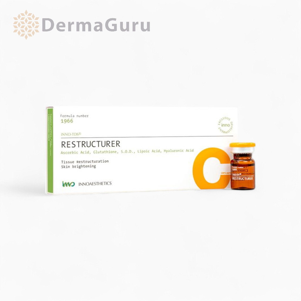 Inno-TDS Restructurer de la Innoaesthetics este un tratament anti-aging avansat, conceput pentru a susține restructurarea pielii și pentru a oferi protecție împotriva stresului oxidativ. Formula contribuie la încetinirea proceselor de îmbătrânire cutanată, la reducerea liniilor fine și a ridurilor și la regenerarea componentelor matricei extracelulare.