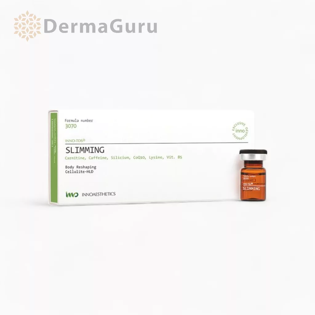 Inno-TDS Slimming este conceput pentru a sprijini țintit reducerea depozitelor de grăsime, diminuarea aspectului de celulită și netezirea texturii pielii. Formula conține ingrediente lipo-active — inclusiv carnitină, cofeină, siliciu, coenzima Q10, lizină și vitamina B5 — care acționează sinergic pentru a susține îmbunătățirea vizibilă și rapidă a conturului corporal, în special în zonele cu celulită.