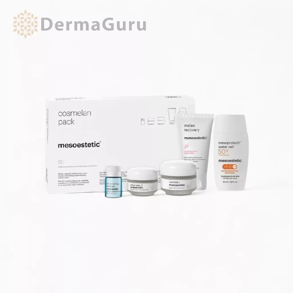 Mesoestetic Cosmelan Pack este un pachet profesional, complet, pentru estomparea petelor pigmentare, creat special pentru petele mai închise la culoare și dificil de tratat. Dacă vrei să reduci eficient discromiile, acest set bazat pe metoda Cosmelan® susține obținerea unui ton al pielii mai uniform, atât pe termen scurt, cât și pe termen lung.