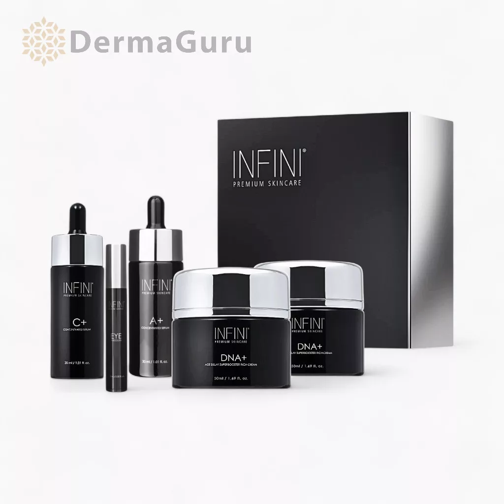 INFINI Ultimate Rejuvenation Collection este un set de îngrijire a pielii complet, creat special pentru cei care caută o soluție anti-aging țintită, eficientă și cu rezultate vizibile. Produsele din pachet acționează în sinergie: cu antioxidanți puternici, mai multe tipuri de acid hialuronic, colagen și peptide cu efect de lifting, susțin reînnoirea pielii și strălucirea ei naturală.
