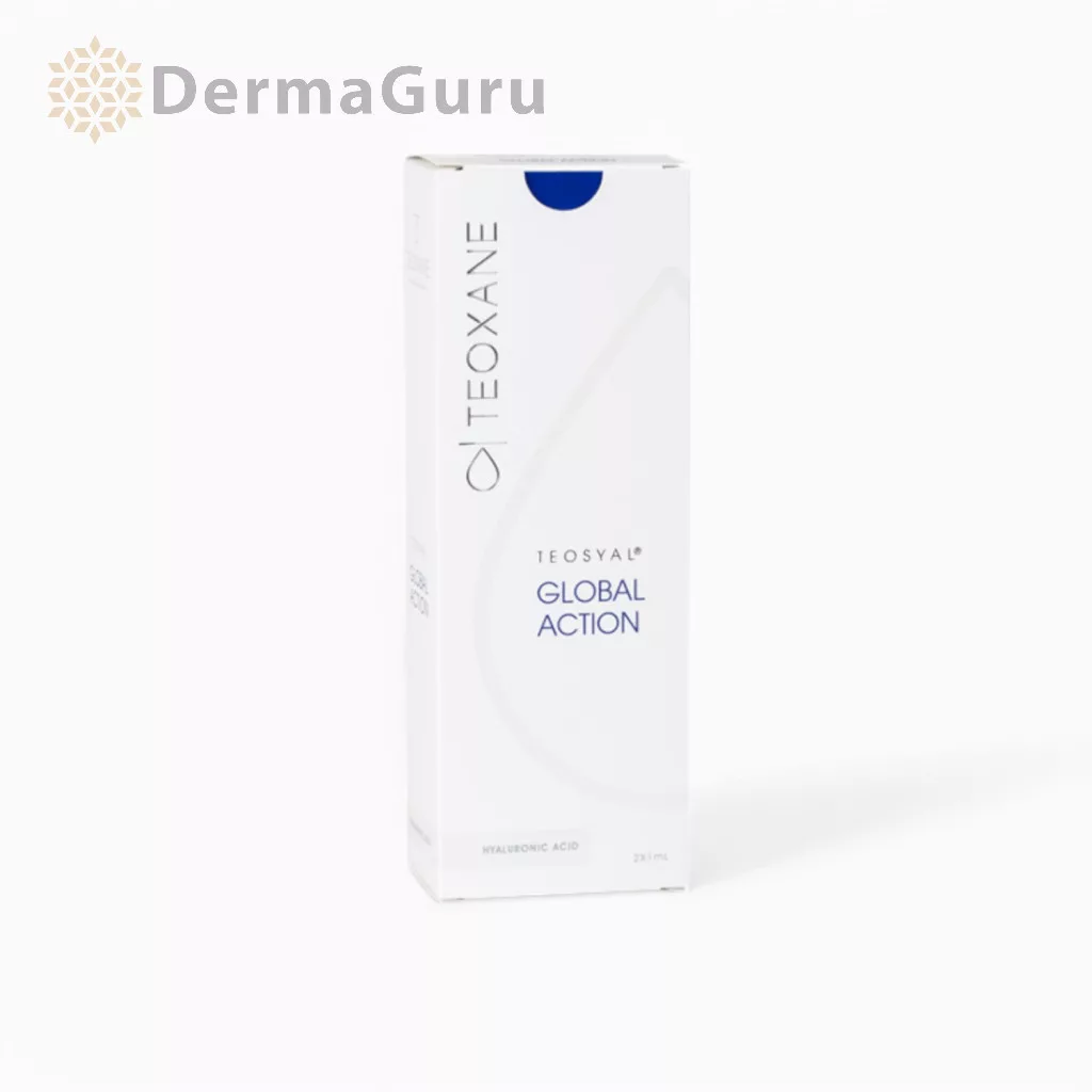 Teosyal Global Action este un umplut de riduri pe bază de acid hialuronic. Se recomandă pentru tratarea ridurilor moderate, pielii lăsate, ridurilor nazolabiale ușoare sau moderate, precum și a ridurilor periorale și glabelare situate în centrul pielii.